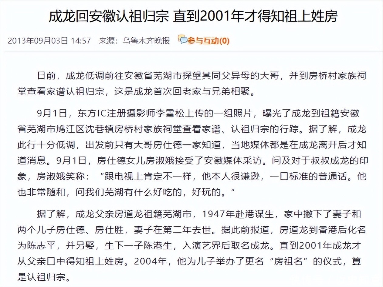 但他们始终牵挂着留在大陆的孩子。成龙成名之后,房道龙曾悄悄汇款回内地,也会通过书信与那边的子女保持联系。