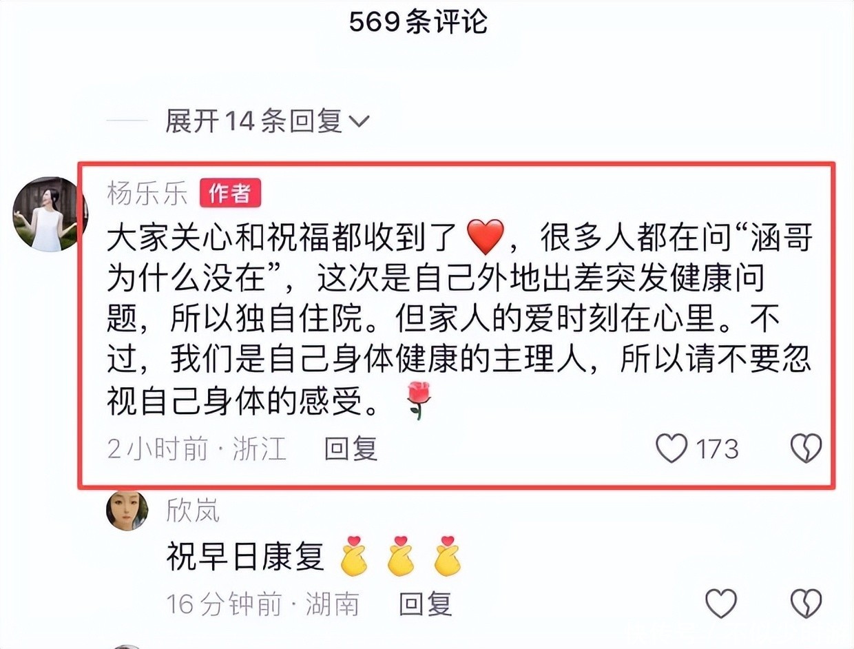 面对汹涌舆情,杨乐乐不得不出面回应,在评论区解释称事发突然,自己来不及通知家人,并强调“家人的爱一直都在心里”。