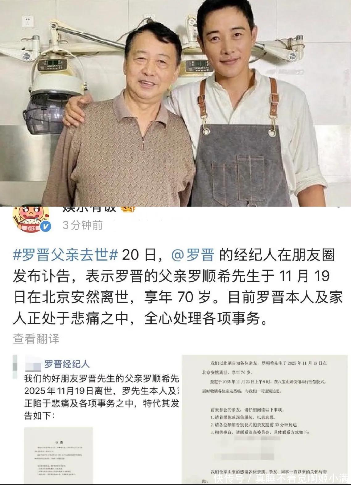 不等当事人出来辟谣,罗晋经纪人的一条丧讯,就让风向突变。