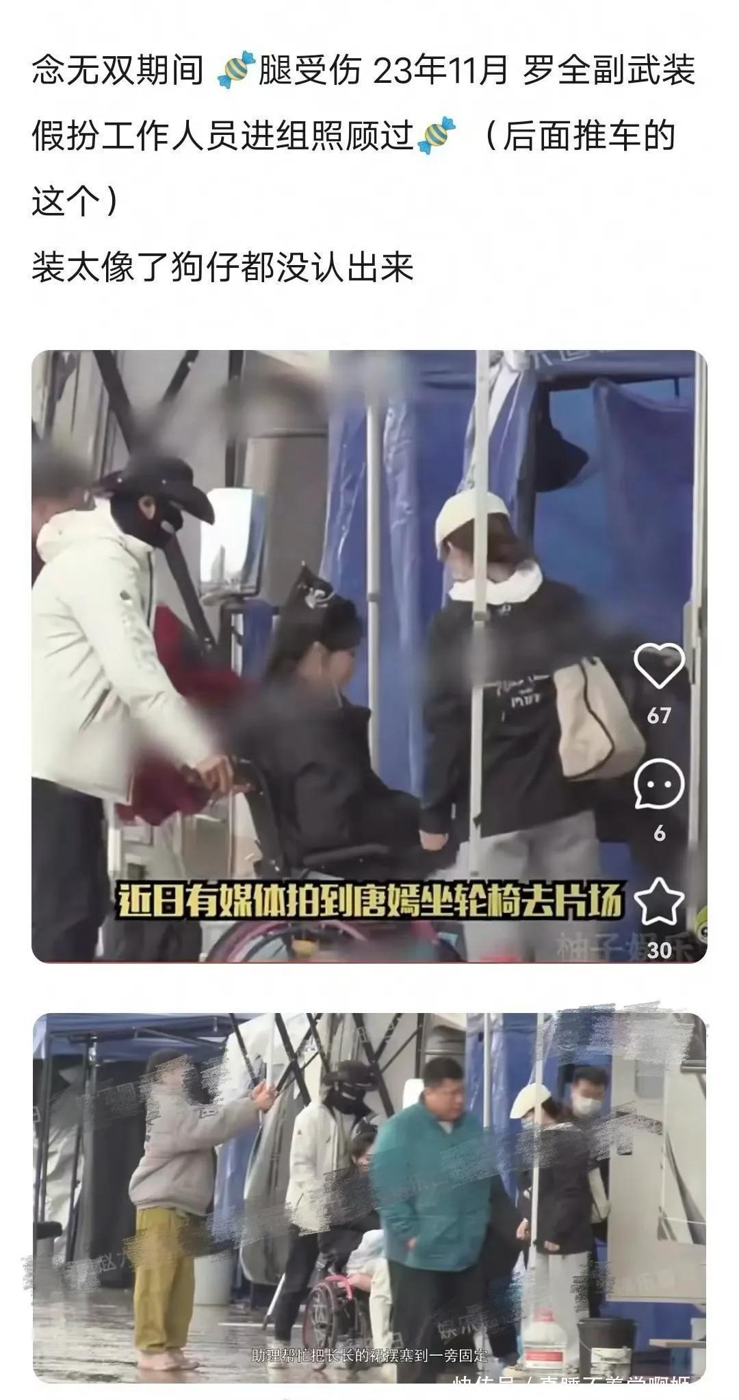 像《念无双》拍摄期间,唐嫣腿受伤,罗就全副武装的进剧组照顾,由于裹得太严实,一向眼神敏锐的狗仔都没认出来。